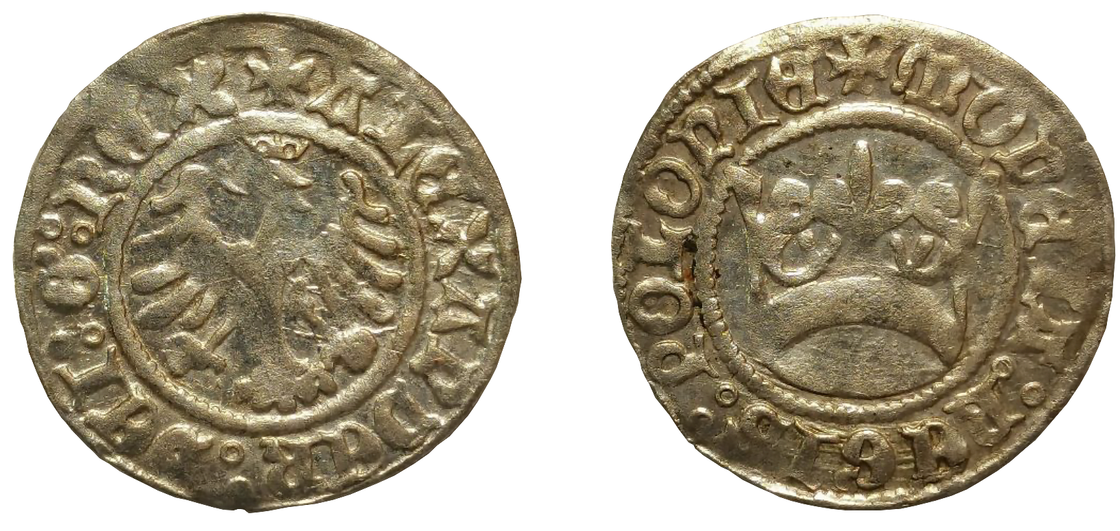Za panowania Aleksandra Jagiellończyka pracowała mennica koronna w Krakowie oraz bijąca monety litewskie mennica w Wilnie. Mennica krakowska biła denary i półgrosze koronne oraz czerwonego złotego, który niestety zaginął. Na denarach umieszczano na awersie orła, a na rewersie koronę. Półgrosze, podobnie jak u poprzednika, na awersie miały wizerunek orła i napis: ALEXANDER DEI G REX, a na rewersie koronę i napis: MONETA REGIS POLONIE.