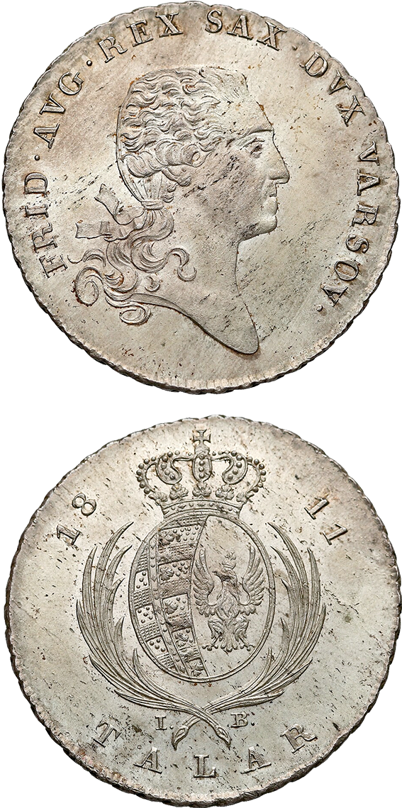 Za podstawę przyjęto talar 6 złotowy, gdzie 1/3 talara odpowiadała 2 złotym, a 1/6 talara 1 złotemu. W Księstwie Warszawskim emitowano następujące monety: 1 grosz, 3 grosze, 5 groszy, 10 groszy, złotówki, dwuzłotówki, talary i dukaty.