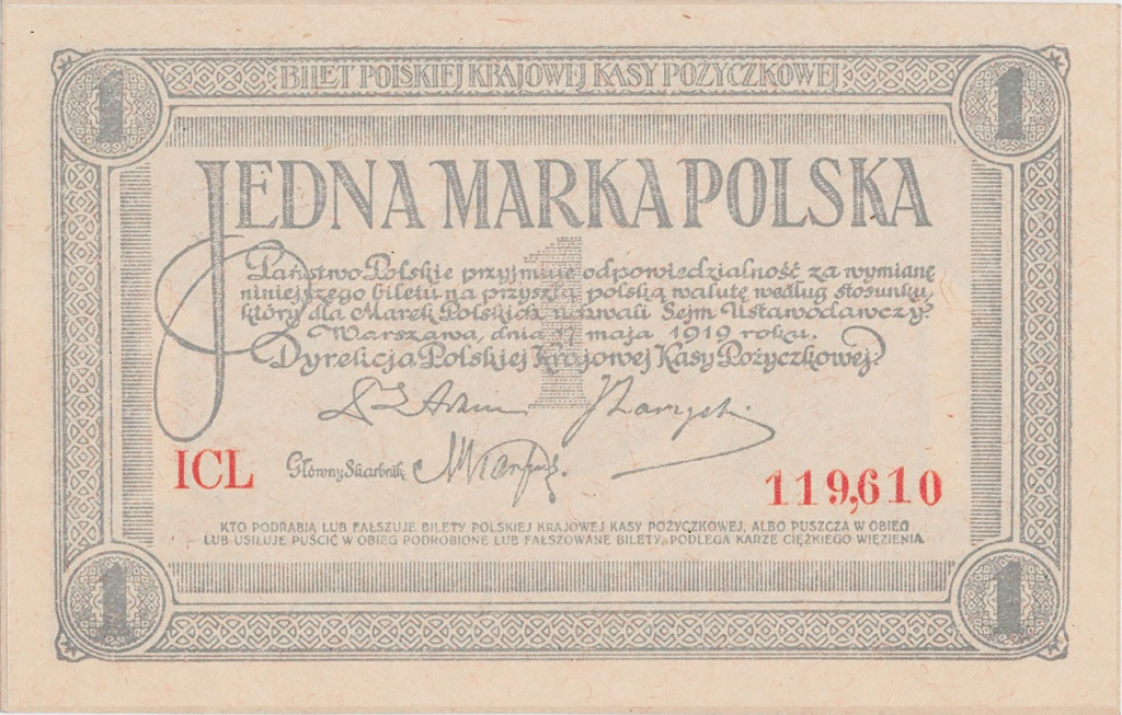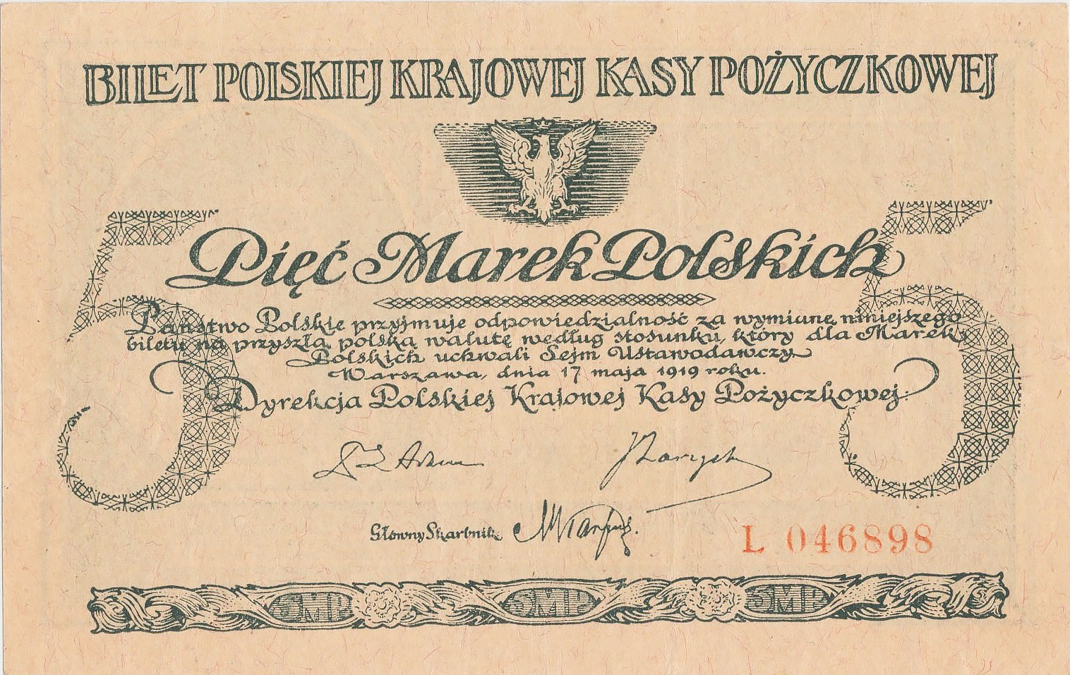 data emisji: 17.05.1919 r., w obiegu: 4.07.1919 r. – 1.07.1924 r., 110 x 70 mm