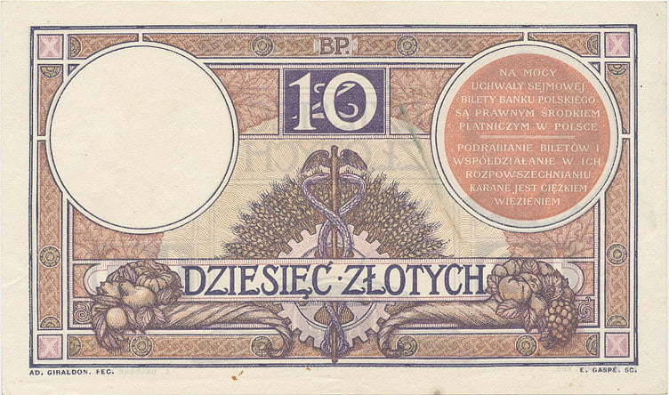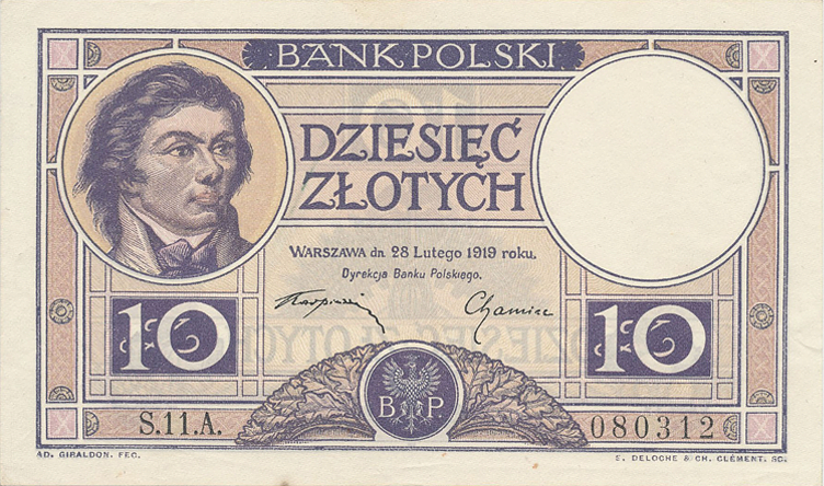 10 ZŁOTYCH – data emisji: 28.02.1919 r., 15.07.1924 r.