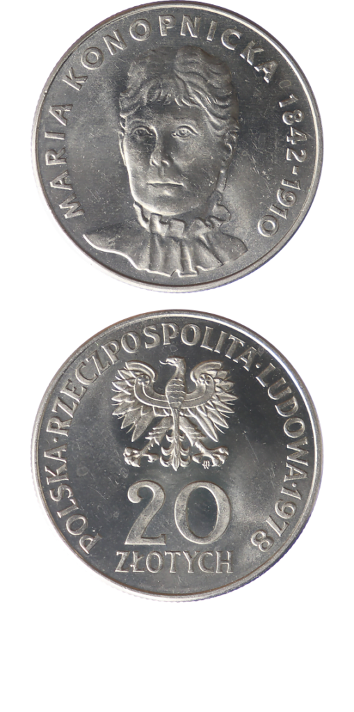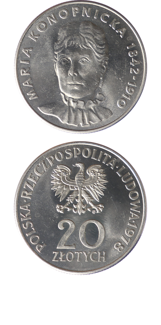 Maria Konopnicka, 1978 r., miedzionikiel, ø 29 mm, 10,1 g