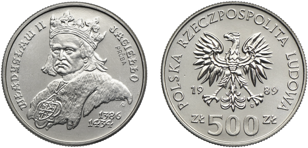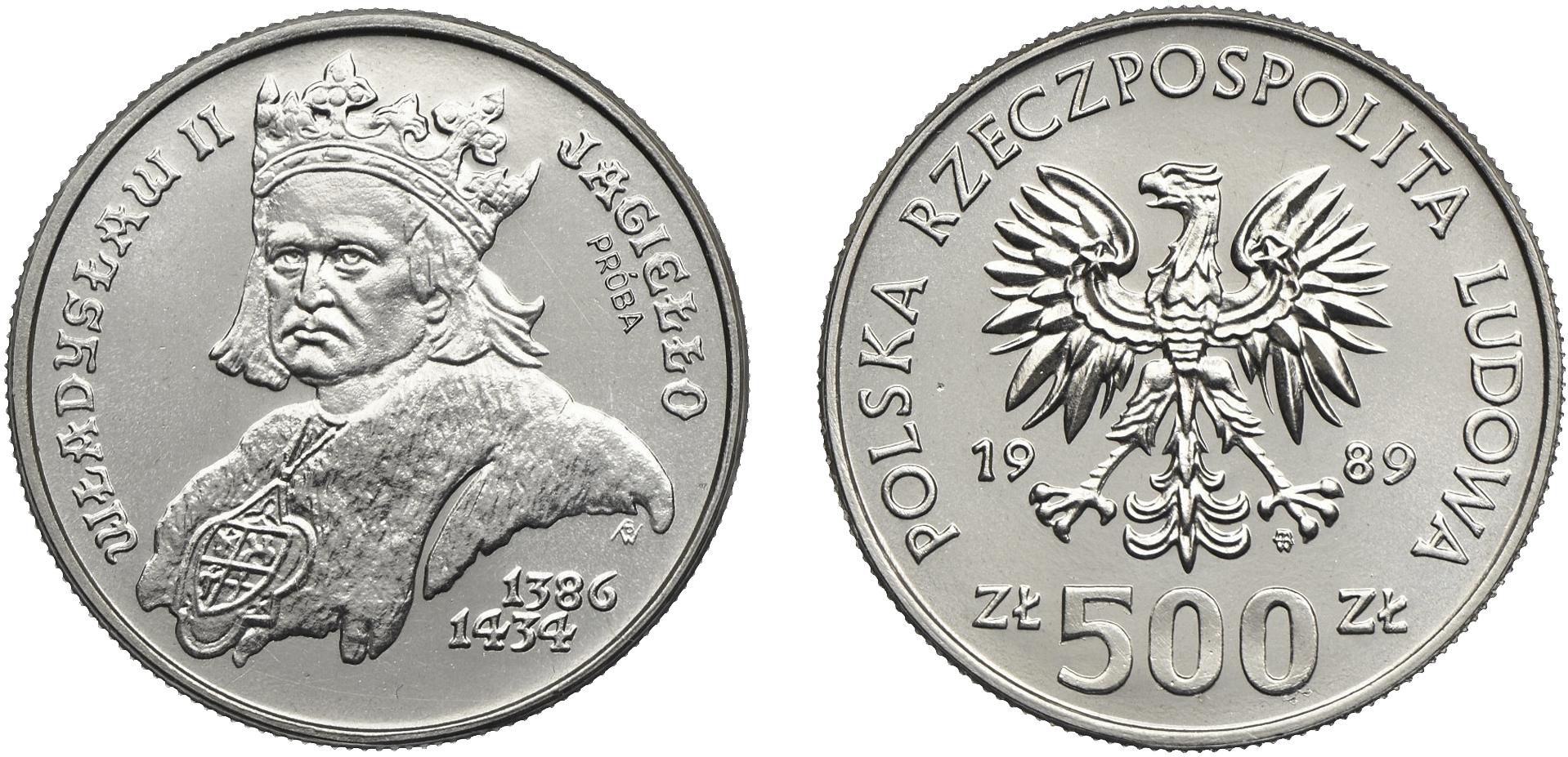 500 ZŁOTYCH – (rewers) – Władysław II Jagiełło, 1989 r.