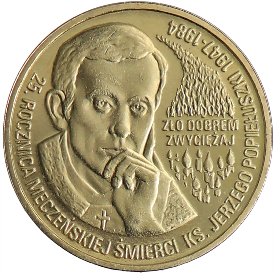 25. rocznica śmierci ks. Jerzego Popiełuszki, 2009 r., Golden Nordic – CuAlZnSn, ø 27 mm, 8,15 g
