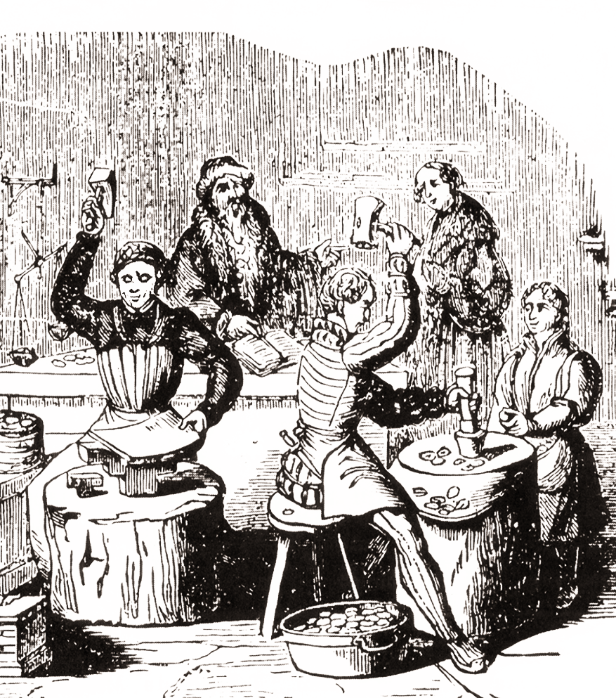 przygotowanie surowca menniczego; łamanie złomu kruszcowego