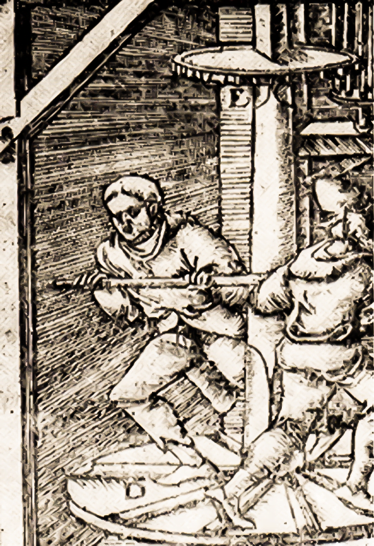 Z czasem zaczęto wykorzystywać młoty mechaniczne, które były uruchamiane poprzez mechanizm kołowy (dreptak, kierat) napędzany siłą mięśni lub strumieniem wody.